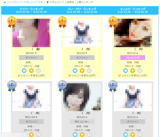 女性側は複数人から同時にポイントを受け取れるため、人気ランキング上位の配信者はこの形式をメインにしているケースが多いです